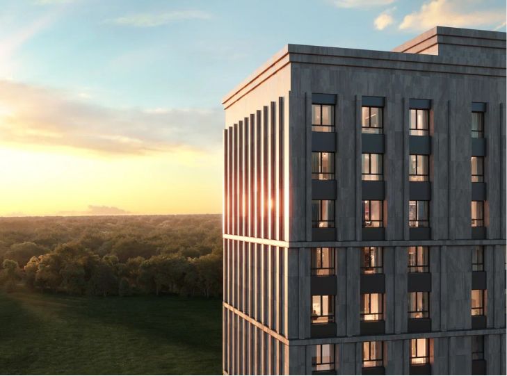 У каждого дома свой неповторимый облик. Литер 6.1 отличает современный и технологичный навесной вентилируемый фасад, собранный из долговечных керамических плит и композитных панелей. Литер 6.2 выполнен из классического керамического кирпича, представленного в элегантной трехцветной гамме, что придает его облику особую солидность и тепло. Вечером контуры зданий выделяет красивая архитектурная подсветка.